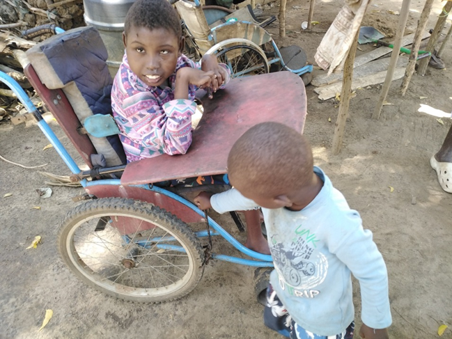 Der 3-jährige Sabastian wohnt mit seinem Vater Majaliusa und 3 Geschwistern in Schulnähe. Die älteste Schwester Amina (12) ist körperlich und geistig beeinträchtigt und sitzt im Rollstuhl. Brenda (8) und Isac (6) fingen spät mit der Schule an und werden immer wieder nach Hause geschickt, weil das Schulgeld nicht bezahlt werden kann. Beim Lernen sind sie weit hinten. Mutter Pendo hat die Familie verlassen, weil sie mit der Behinderung der Tochter überfordert war. Der Vater ist nun alleine für die Kinder da und es fällt ihm schwer, seinem Job als Motorrad-Taxifahrer nachzugehen, weil Amina Betreuung braucht und er auch für die anderen Kinder alleine sorgen muss. Er hat keinerlei Hilfe von Verwandten oder Nachbarn.