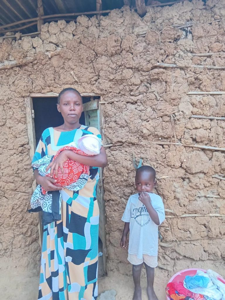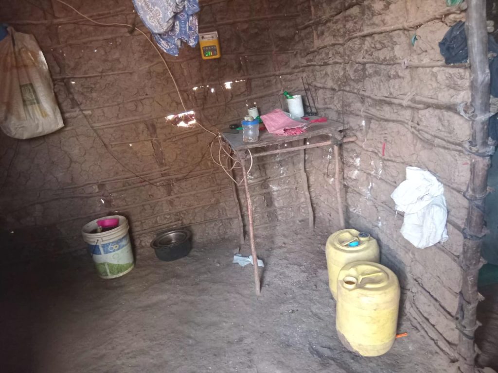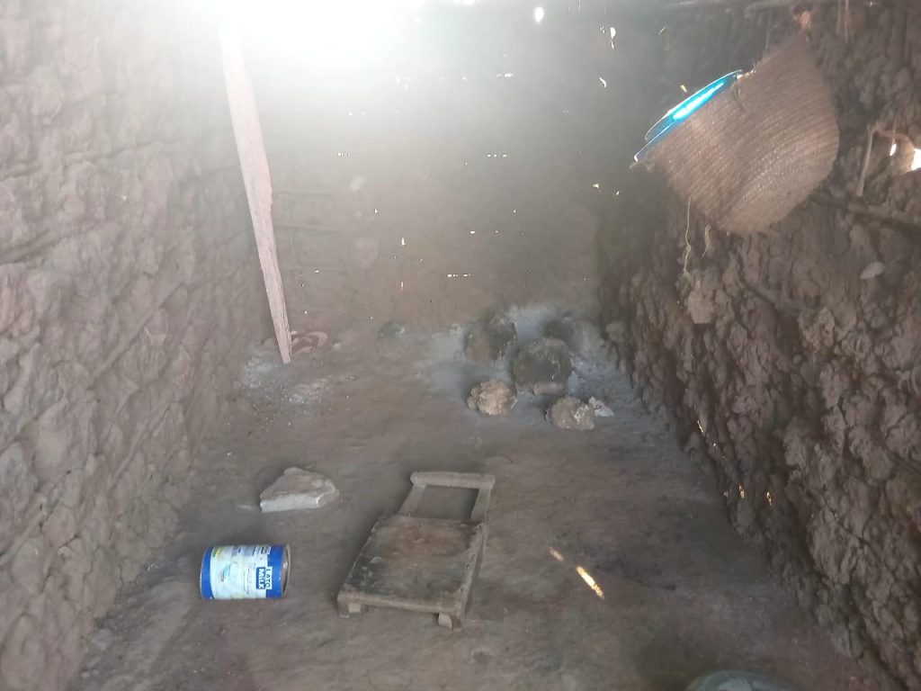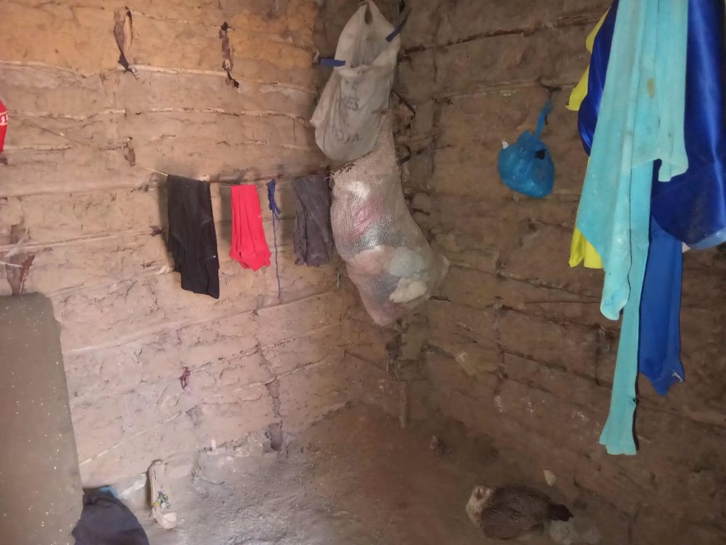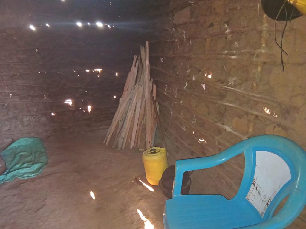 Die Mutter fand Unterschlupf bei ihrer Mutter. Die einräumte Lehmhütte mit Wellblechdach ist in einem schlechten Zustand und hat nicht einmal eine Türe, sondern nur ein Stück Wellblech vor der Öffnung.