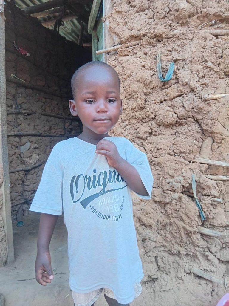 Der 3- jährige Weslay lebt mit Vater Levis und Mutter Hadija und 2 Geschwistern in einer einräumigen Lehmhütte mit Wellblechdach.