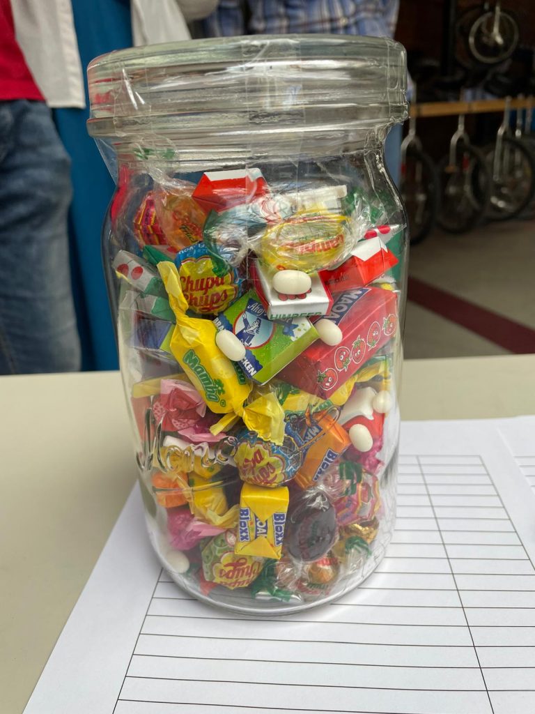 Ein kleines Highlight: für die Kinder wurde ein Ratespiel vorbereitet. Es durfte geraten werden, wie viele Bonbons sich in einem Glas befanden und am Ende gab es 6 Gewinnerkinder, die mit tollen gesponserten Preisen nach Hause gingen.